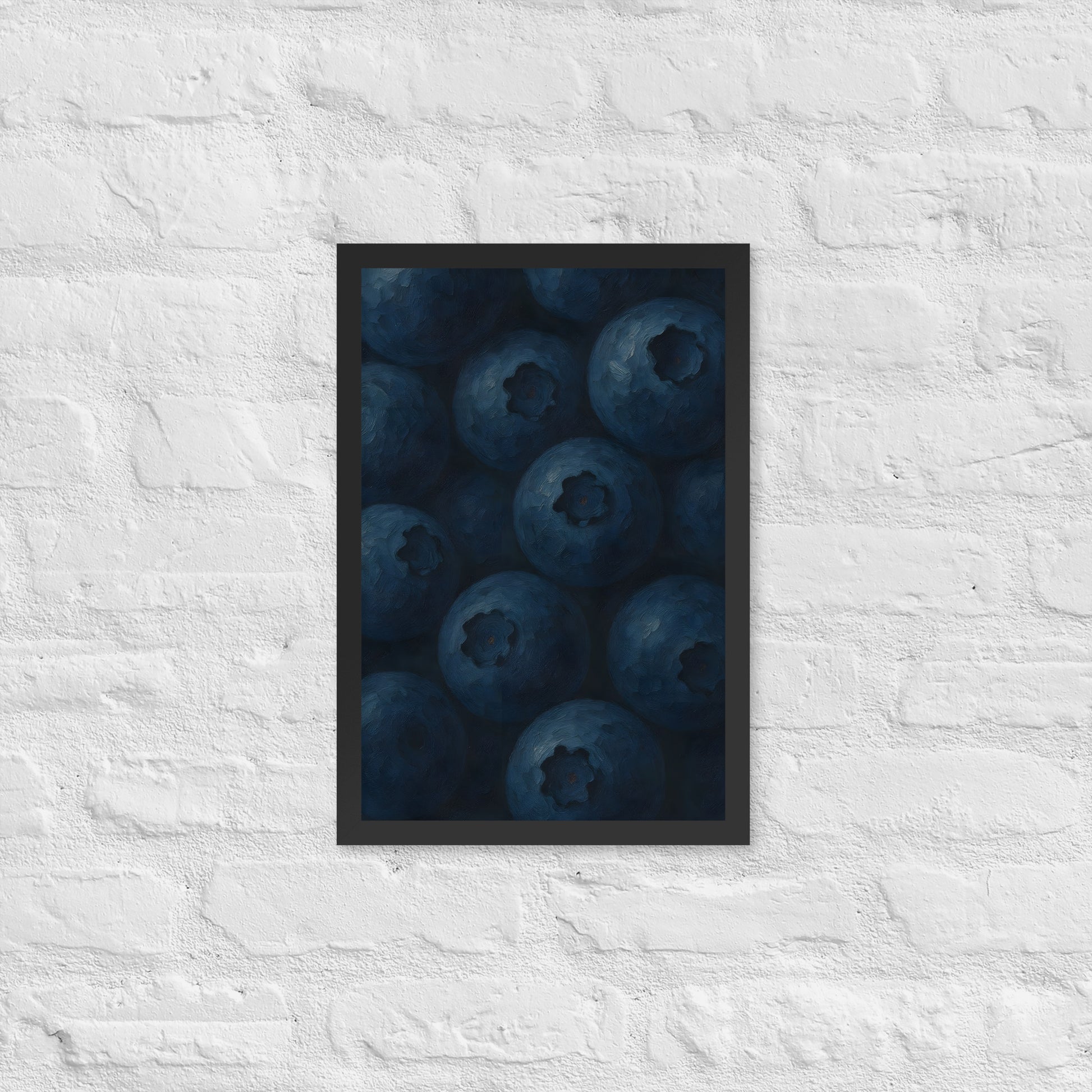 Blåbær - Plakat med ramme Sort/Hvid/Træ
