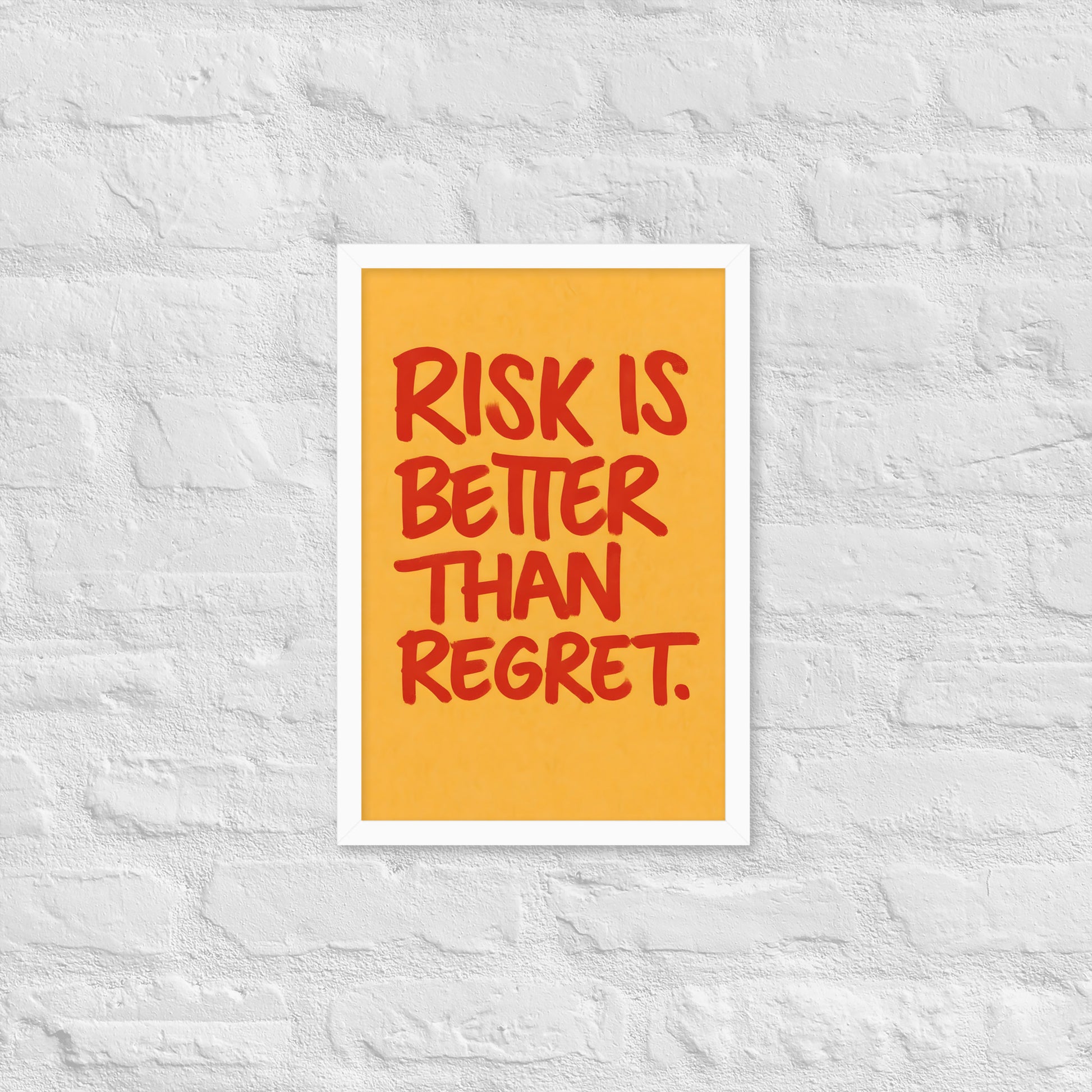 Risk is better than regret - Plakat med ramme Sort/Hvid/Træ